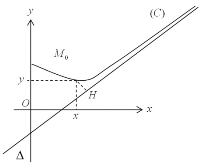 Như vậy: \[\left( \Delta \right)\] tiệm cận của \[\left( C \right) \Leftrightarrow \mathop {\lim }\limits_{M \to \infty } MH = 0\]