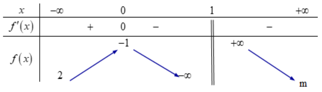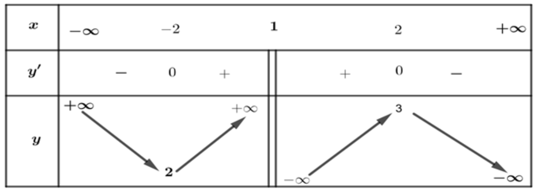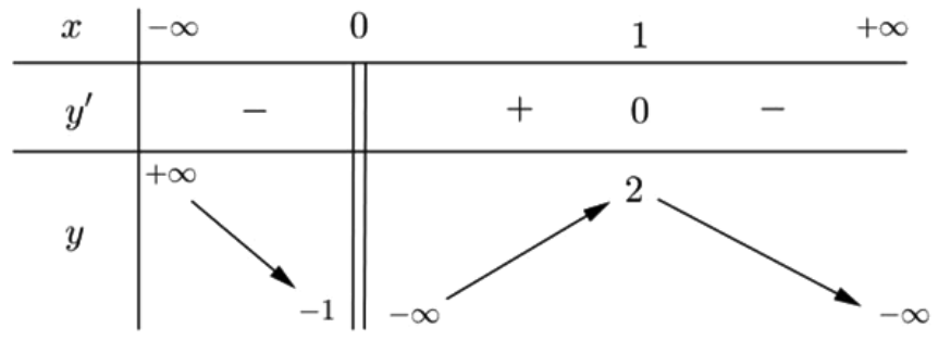 Câu 2. Cho hàm số \[y = f\left( x \right)\] xác định trên \[\mathbb{R}\backslash \left\{ 0 \right\}\], liên tục trên mỗi khoảng xác định và có bảng biến thiên như sau: