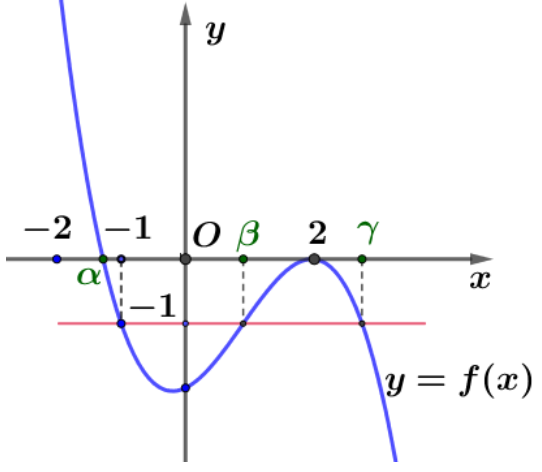 x = \alpha \in \left( { – 2; – 1} \right) \hfill \\