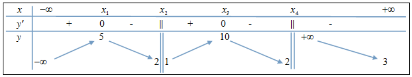 Vì \[\mathop {\lim }\limits_{x \to x_4^ + } y = + \infty \] nên đồ thị hàm số có 1 TCĐ \[x = {x_4}\].
