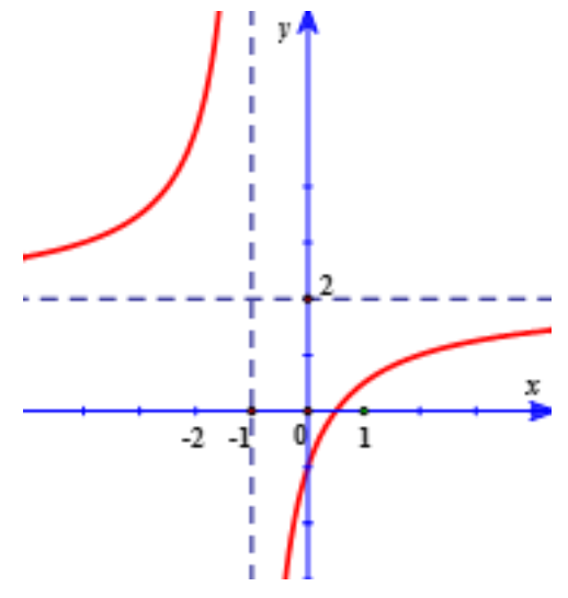 Vì \[\mathop {\lim }\limits_{x \to – {2^ + }} y = – \infty ;\mathop {\lim }\limits_{x \to – {2^ – }} y = + \infty \] nên đồ thị hàm số có 1 TCĐ là \[x = – 2\]