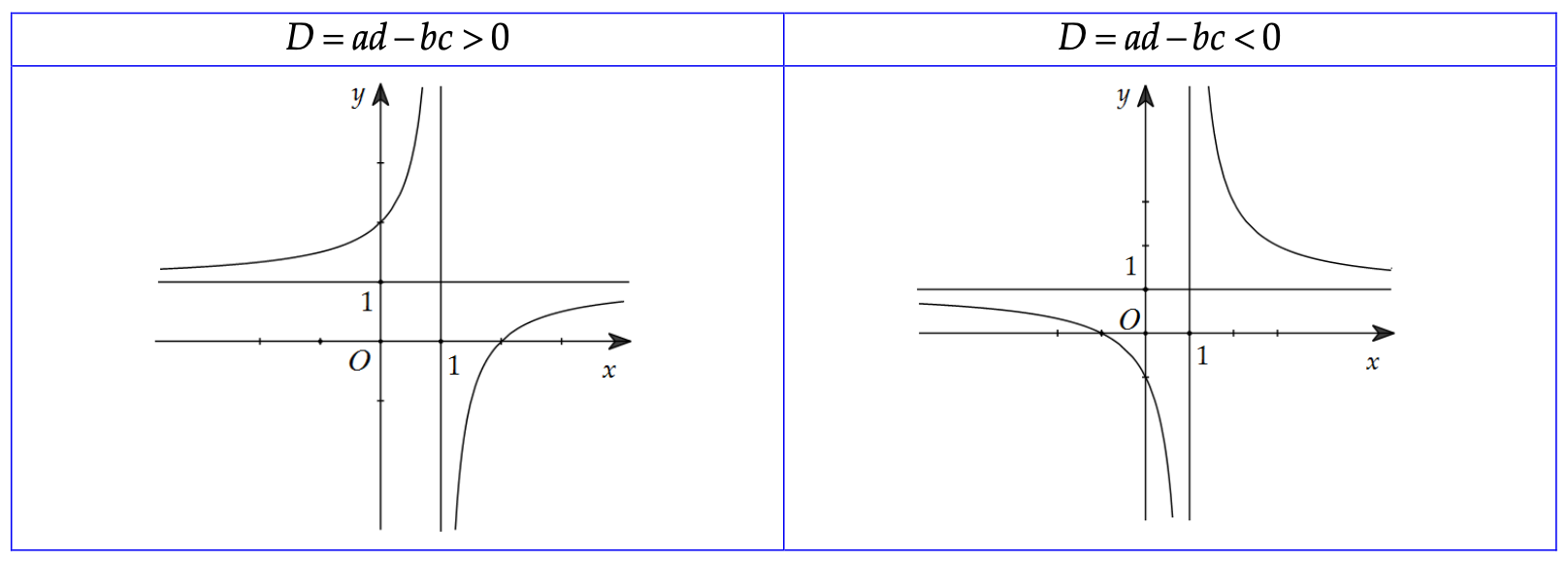 Hàm số nhất biến \[y = \frac{{ax + b}}{{cx + d}}\left( {c \ne 0,ad – bc \ne 0} \right)\]
