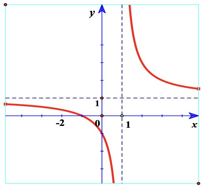 Lưu ý: Giao điểm \[I\left( {1;1} \right)\] của hai tiệm cận là tâm đối xứng của đồ thị.