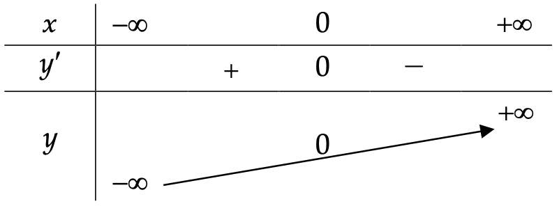 \[y’ = – x – \frac{{{x^3}}}{2} = – x\left( {1 + \frac{{{x^2}}}{2}} \right)\]. Xét \[y’ = 0 \Leftrightarrow x = 0\]