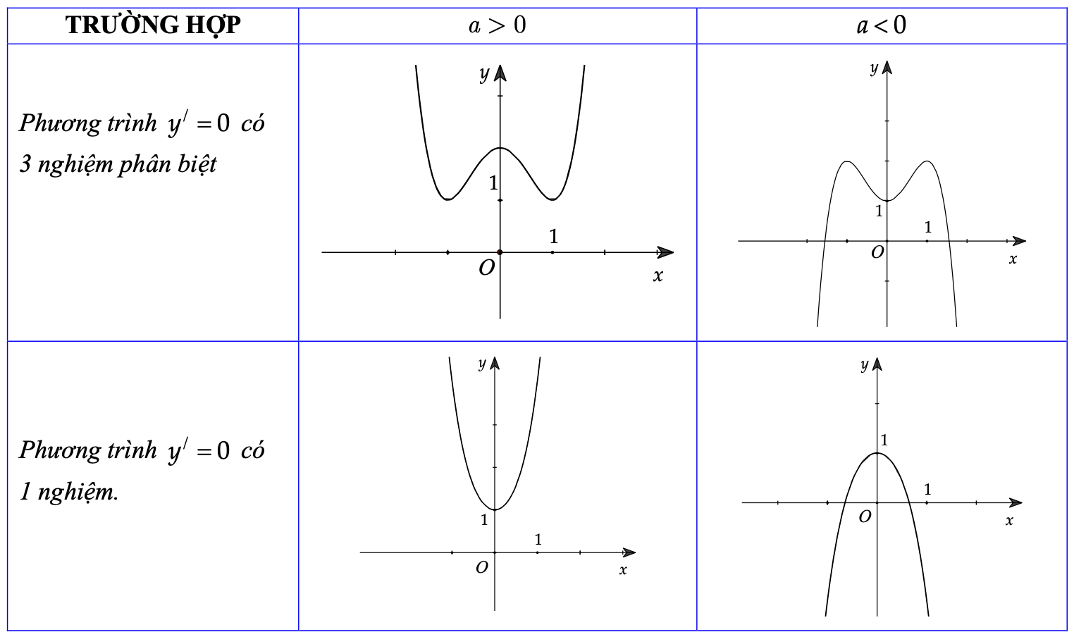 Hàm số trùng phương \[y = a{x^4} + b{x^2} + c\left( {a \ne 0} \right)\]
