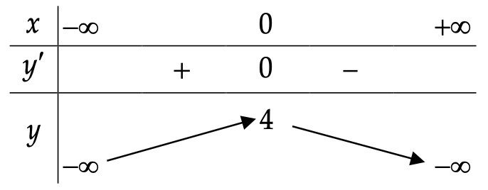 Hàm số đạt cực đại tại \[x = 0;{y_{C\rlap{–} D}} = y\left( 0 \right) = – 3\]
